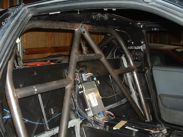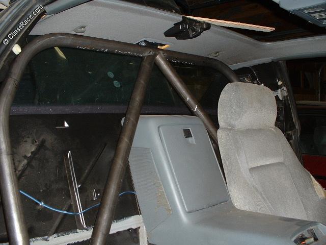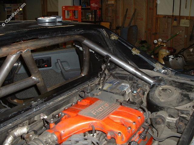 | A view from the outside showing the completed roll bar. |