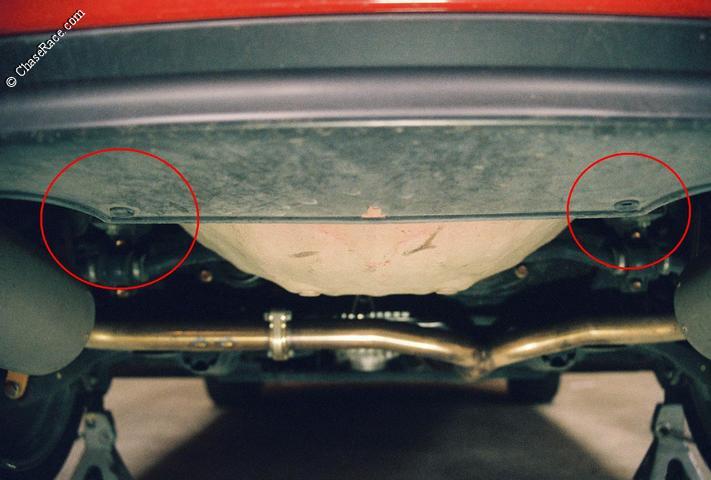 First, jack up the rear of the car and support it securely on jack-stands... |