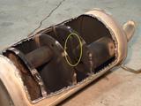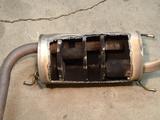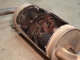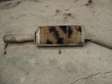 The complete exhaust two mufflers: a small resonator and a larger canister.